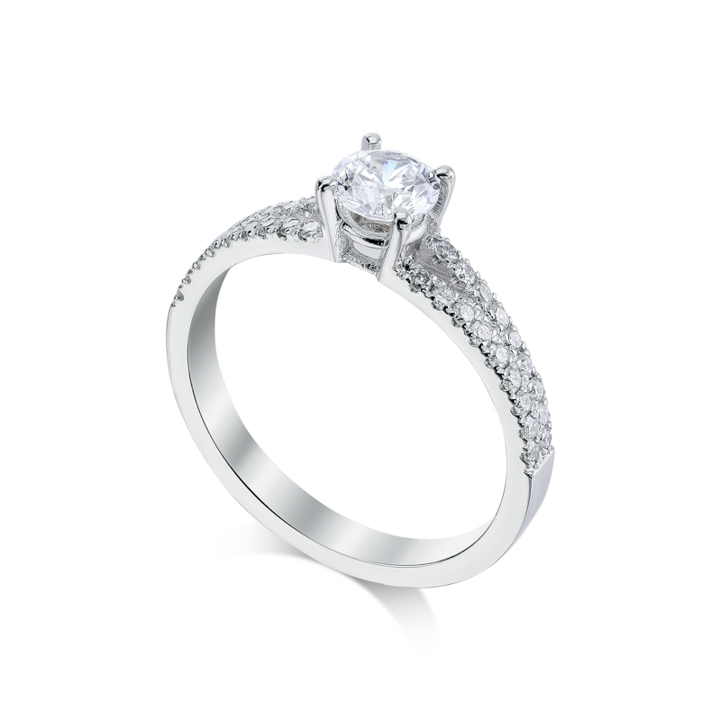 טבעת עם יהלום מרכזי ויהלומי צד