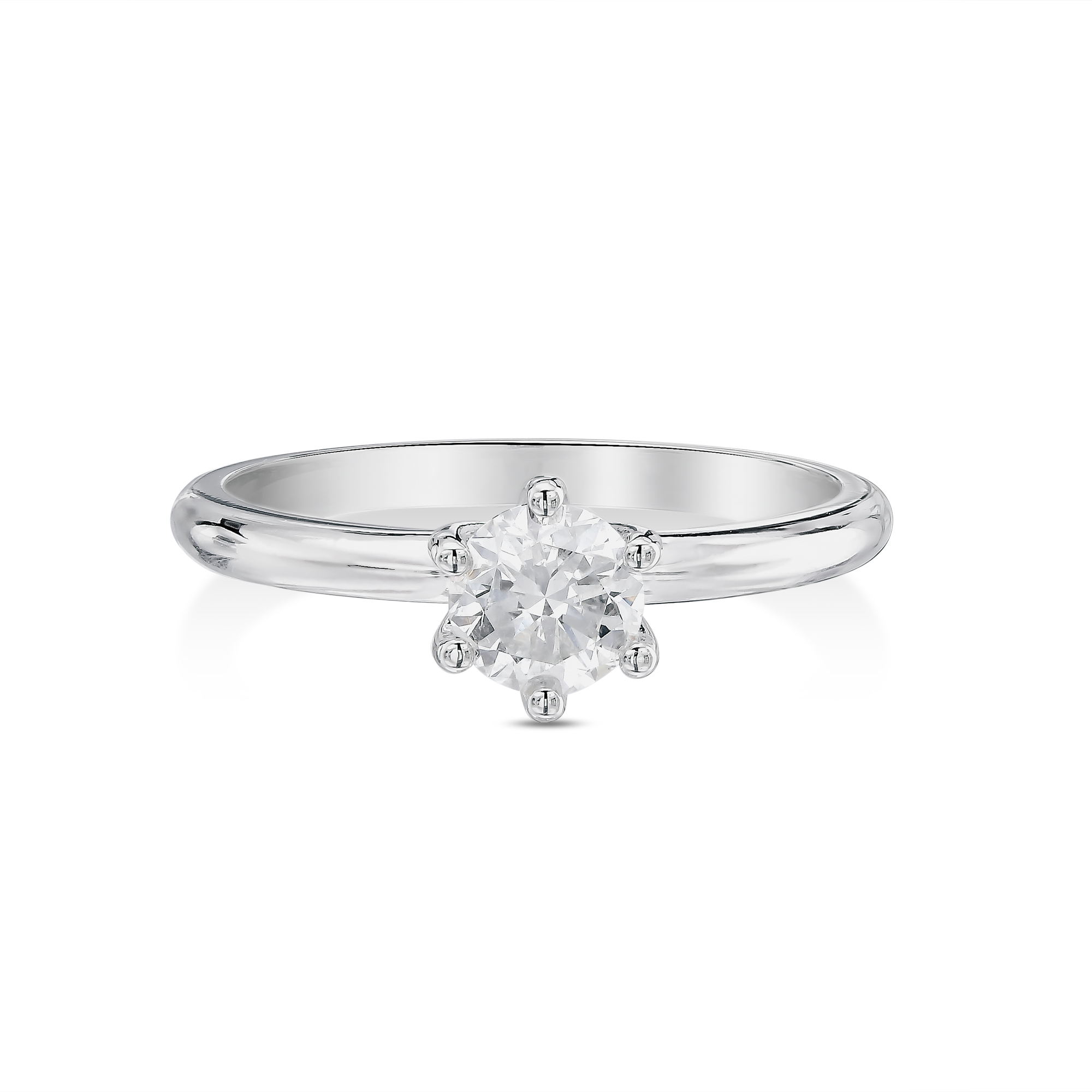 טבעת ארוסין קלאסית ויפיפיה עם 6 שיניים המשובצת ביהלום מרכזי בלבד