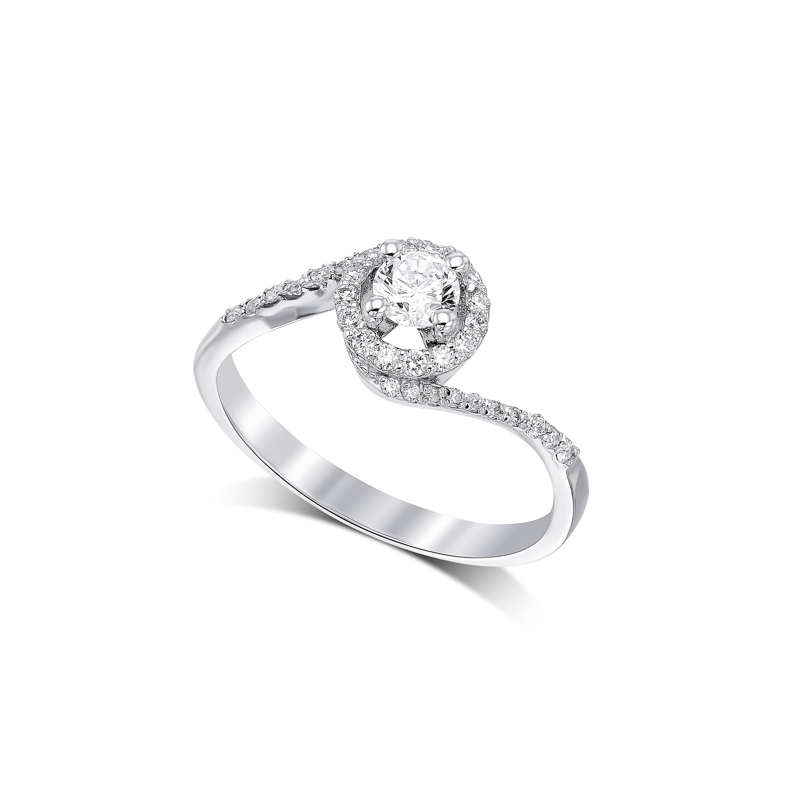 טבעת סוליטר עם יהלום מרכזי ומסביב יהלומי צד מסובב