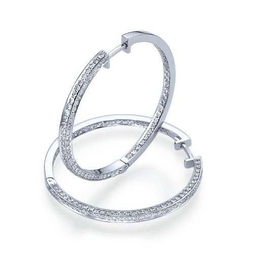 עגילי לופ משובץ ביהלומים סביב – על פרופיל מרובע